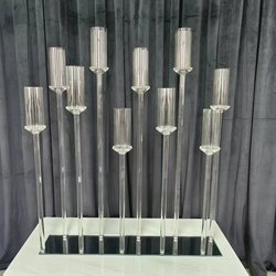 Candelabro de racimo de cristal de estilo europeo, pantalla de rayas acrílicas para decoración de centro de mesa de boda