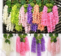 Venta al por mayor interior boda colgante techo decoración falso frijol flor artificial glicinia vid para Navidad Pascua Día de la madre