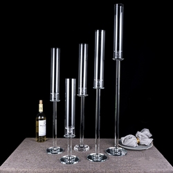 Avrupa tarzı kristal küme mumluk akrilik çizgili abajur düğün masa Centerpiece dekorasyon için